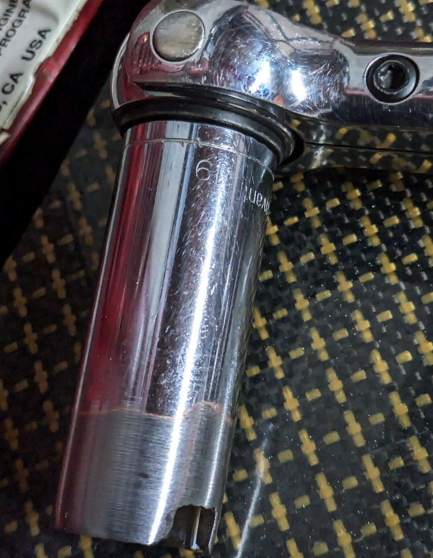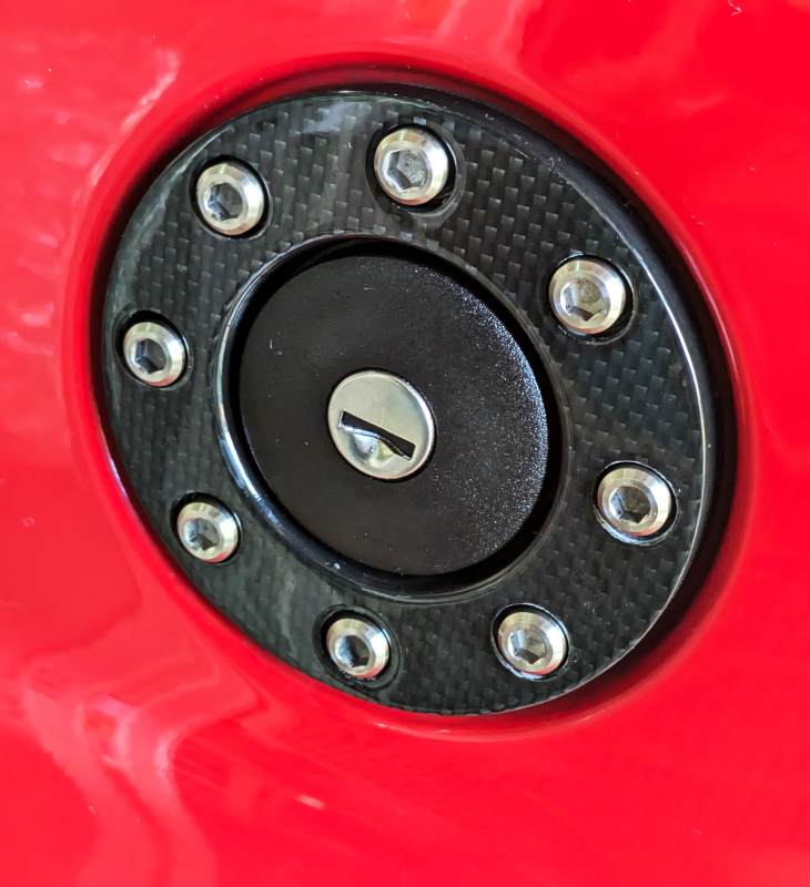 今回の新装備、C-FRP製フュエルリング、傷が目立つ純正を手直しするにも