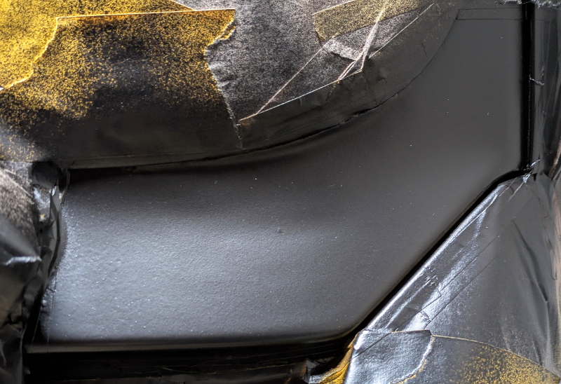 運転席側はパテを#400で空研ぎして、ゴム系スプレーで塗装・・・綺麗に成った。