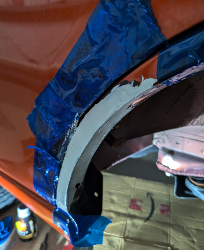 エポパテを削った後、届いたポリパテ=ホルツの厚付けを塗る。